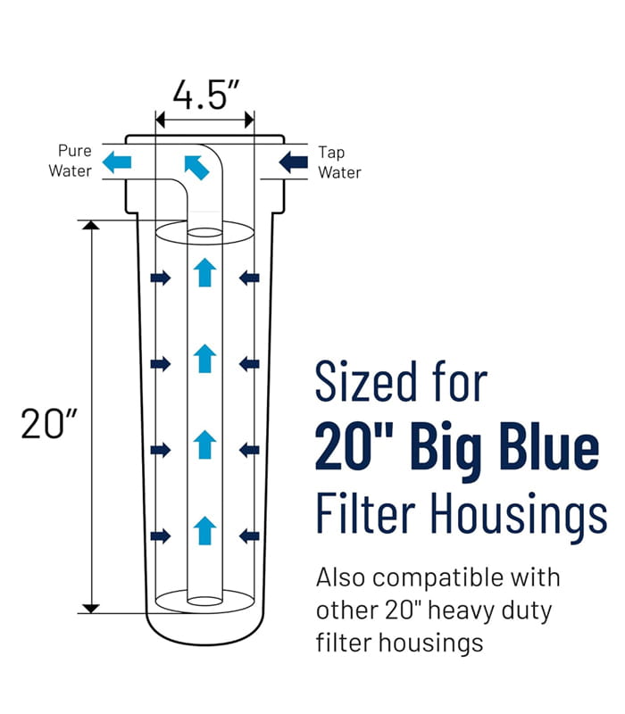 Compatibile con tutte le cartucce filtranti JUMBO e BIG 4,5″ x 20″.